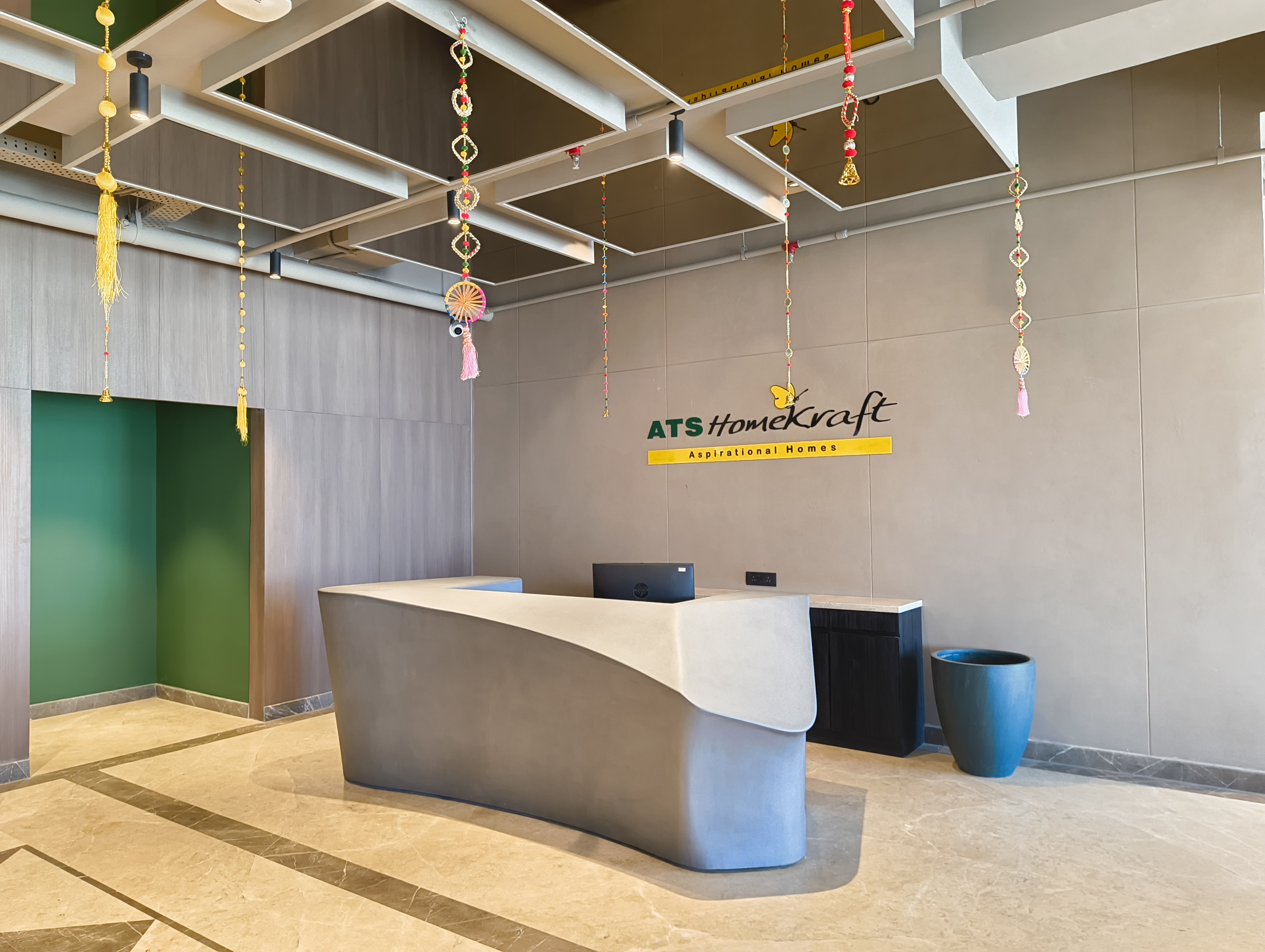 ATS Homekraft office project in Gurugram showcases elegance, with striking backpainted glass as the centerpiece finish (10000 sqft).