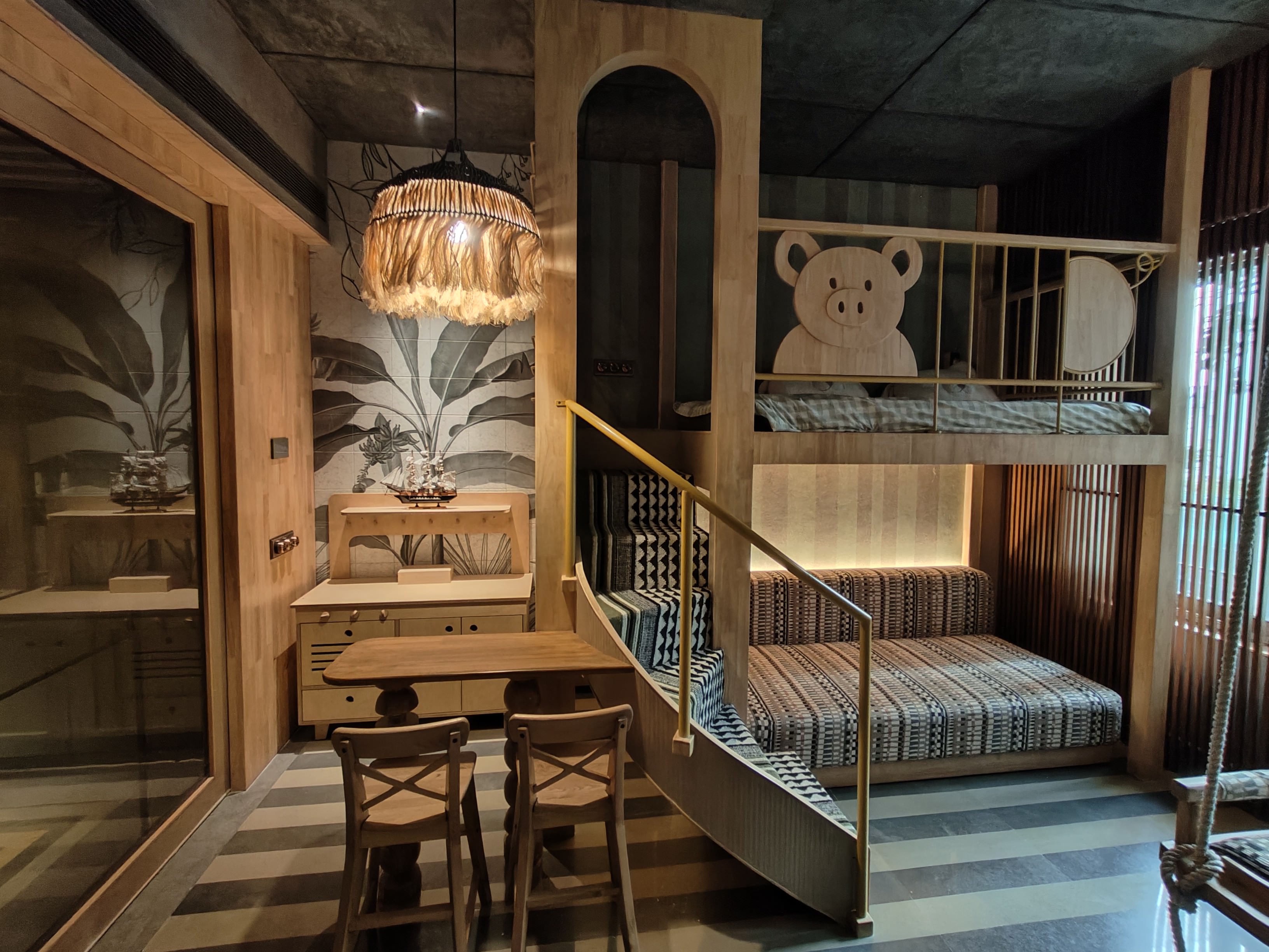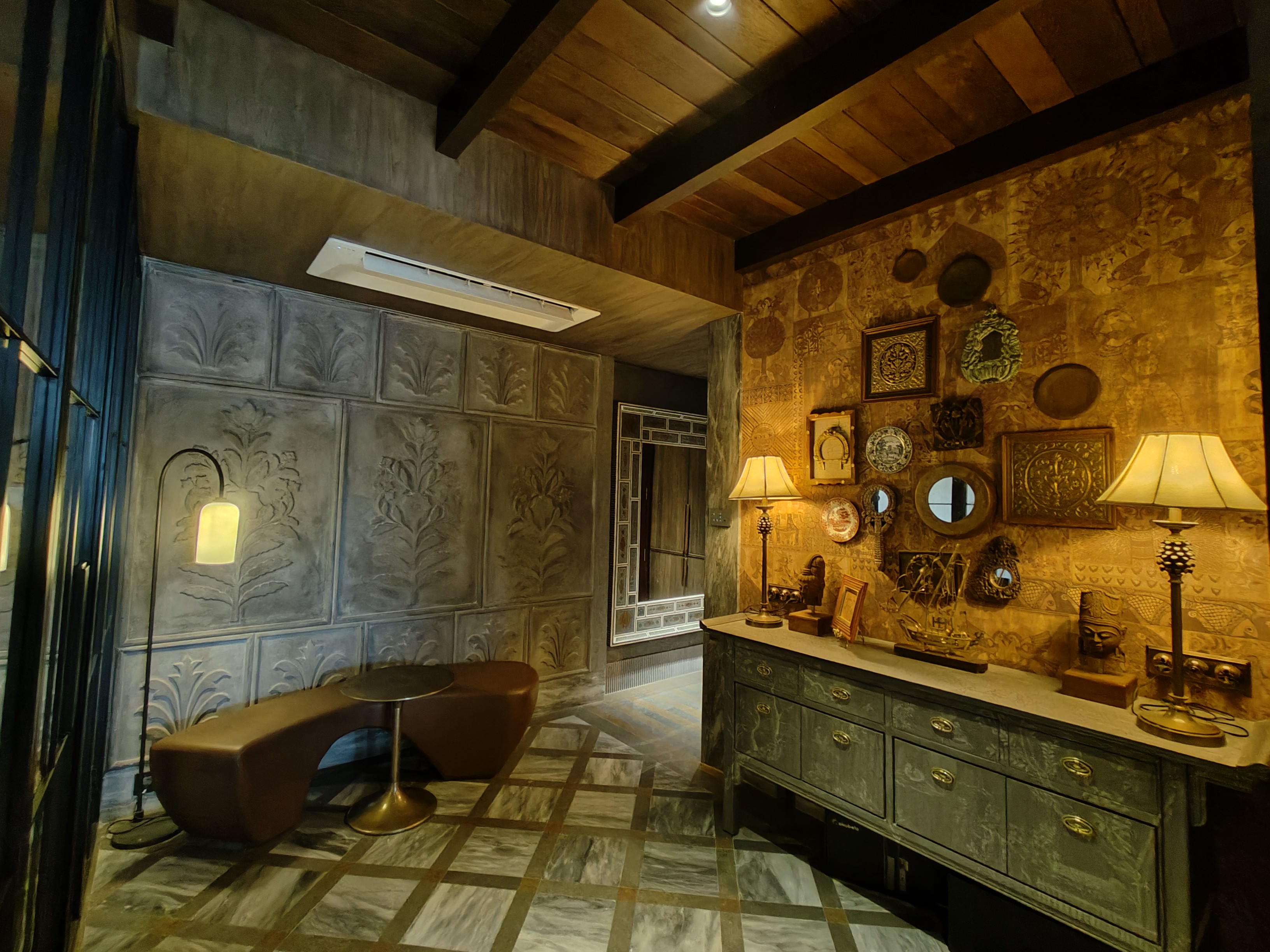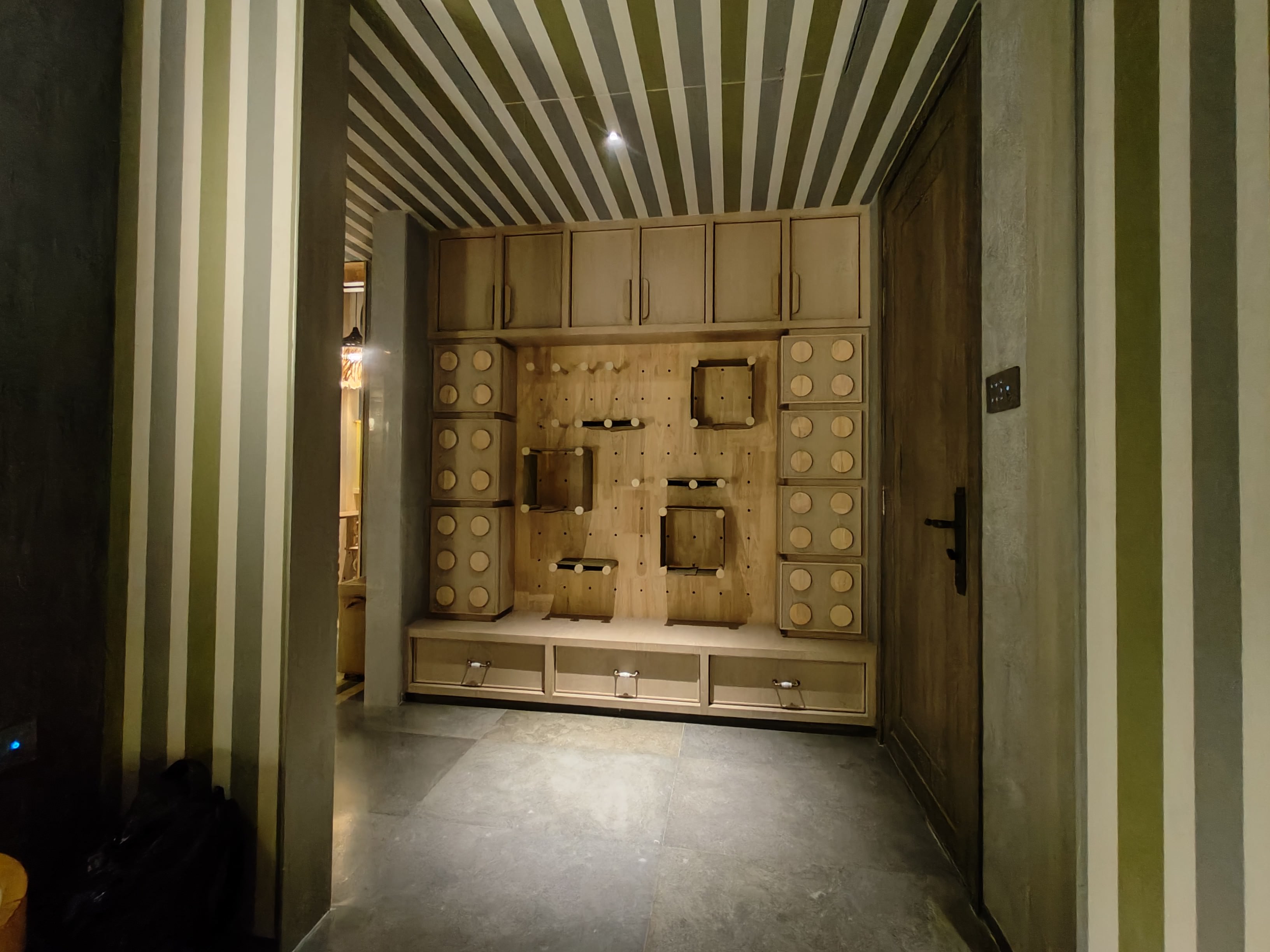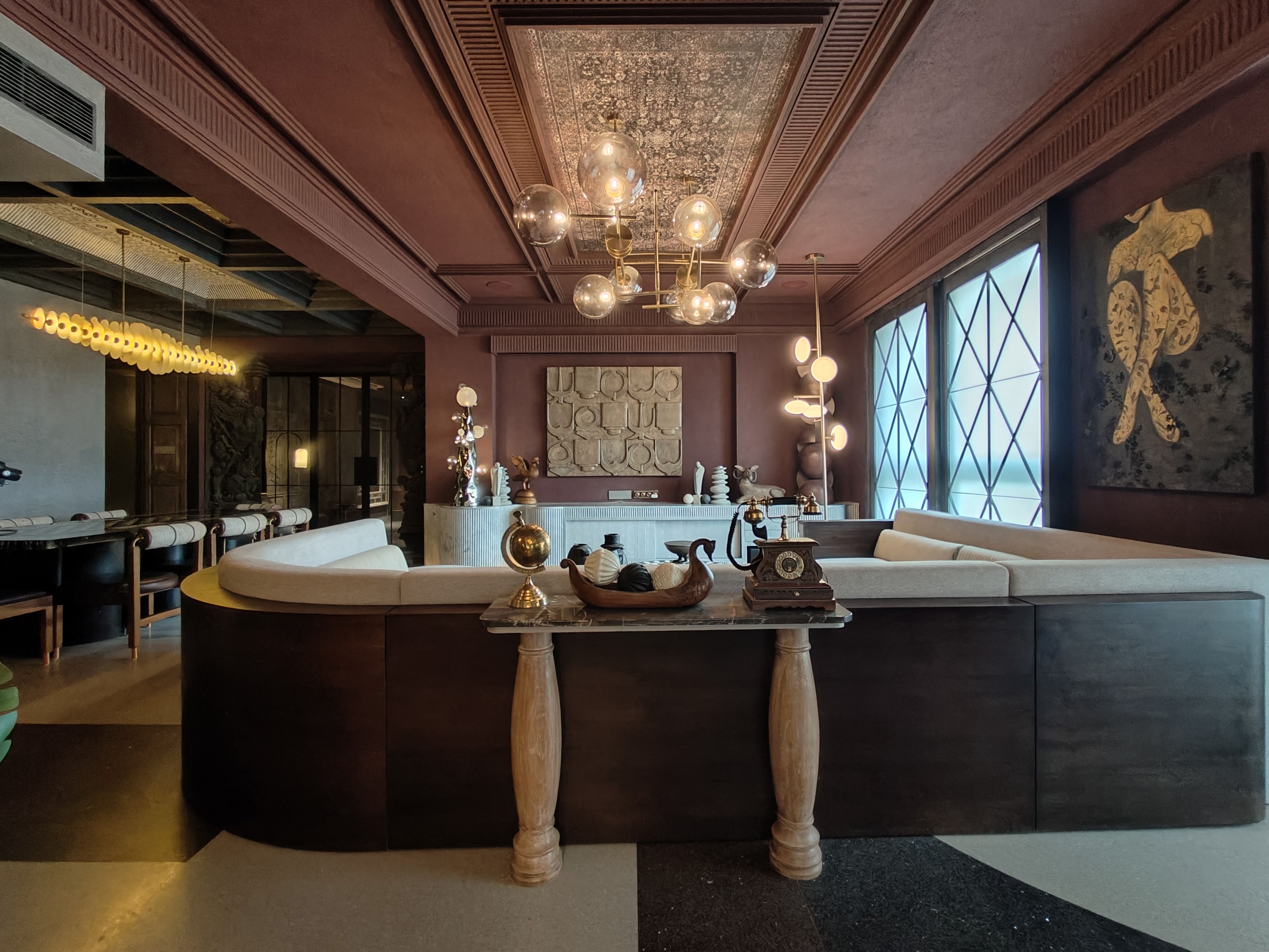 D.K Interiors successfully delivered a refined 3,000 sq. ft. residence at Rustomjee Elements in collaboration with TMD Group of Architects, designed by Tejal Mathur. The project stands out for its bold maroon palette and elegant striped detailing, creating a strong yet sophisticated visual identity. Exceptional craftsmanship in carpentry and precise civil execution ensured flawless finishes, clean lines, and seamless design integration, bringing this exquisite residential vision to life.